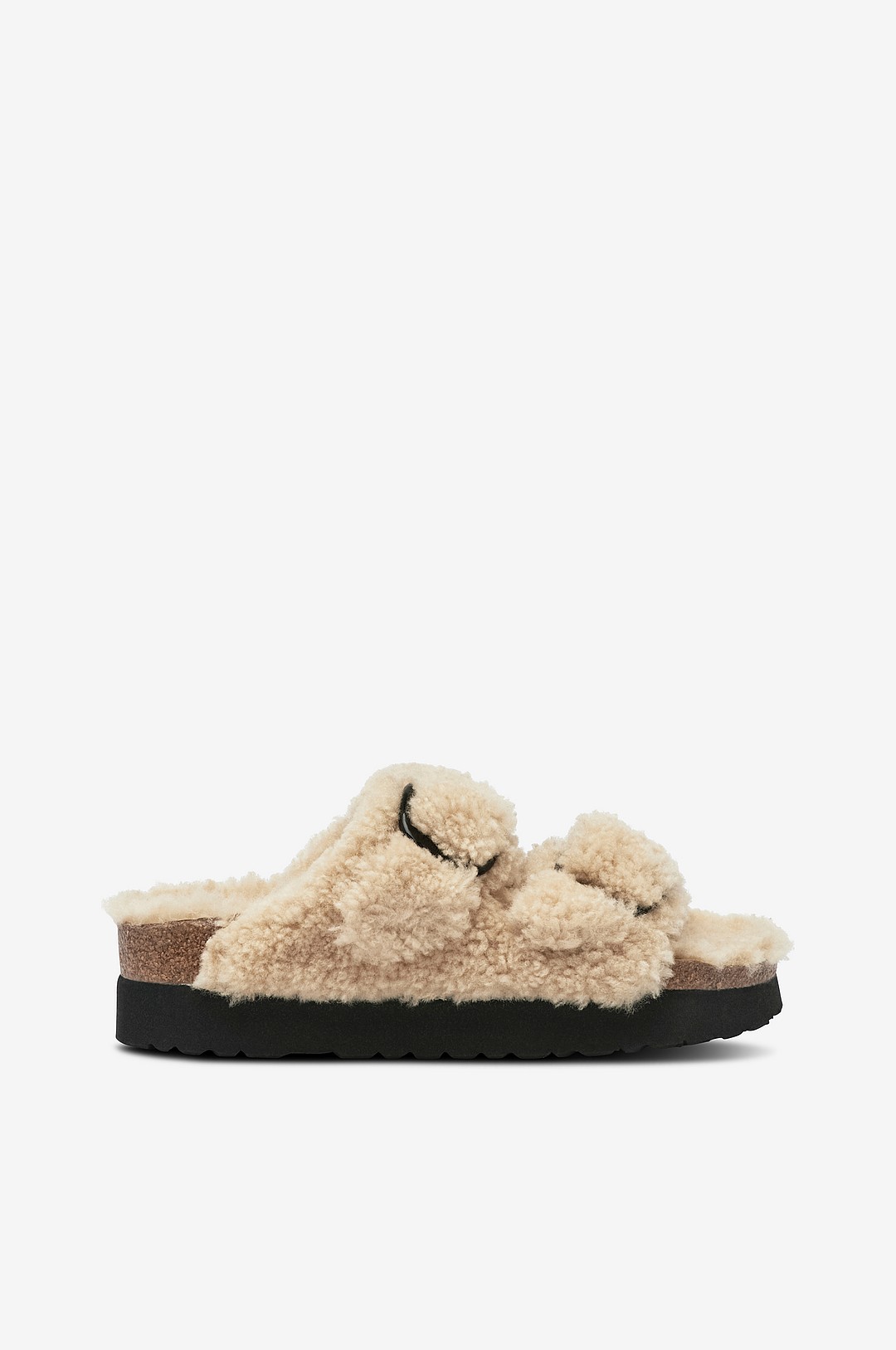 Birkenstock - Tofflor Arizona Big Buckle Platform Fur - Vit