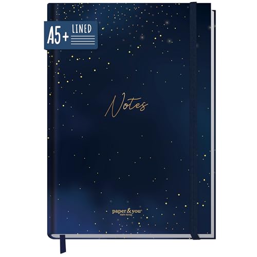 paper&you® anteckningsbok A5+ linjerad med elastiskt band "Starry Night" 156 sidor, 78 ark - som journal, dagbok - hållbar & klimatvänlig