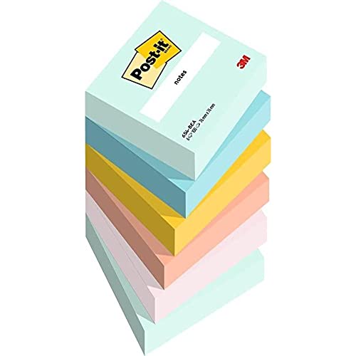 Post-it Notes Strandfärgsamling, paket med 6 dynor, 100 ark per dyna, 76 mm x 127 mm, grön, gul, orange, blå, rosa - självklistrande anteckningar för anteckningar, att göra-listor och påminnelser