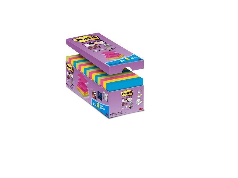 Post-it Superklibbiga Z-anteckningar, karneval färgkollektion, 76 mm x 76 mm, 90 ark/dyna, 8 + 4 gratis dynor/förpackning