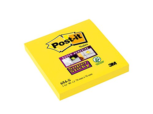 Post-it Super Sticky Notes 654-S6, 76 x 76 mm, narcissgul, 1 block med 90 ark