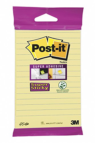 Post-it 675-6SCY Super Sticky Notes, 101 x 101 mm, linjerad, 6 block av 90 ark, gul