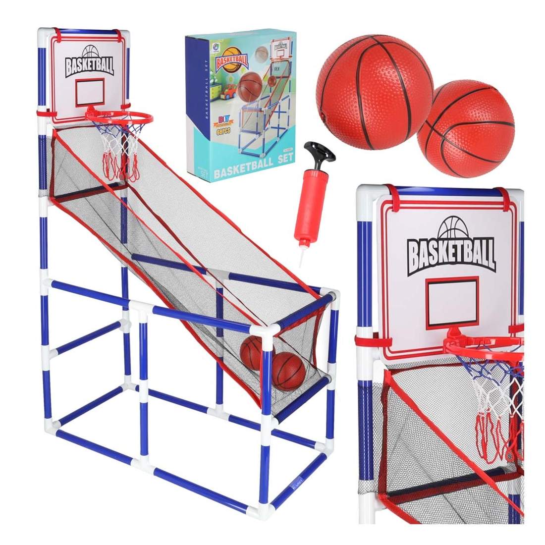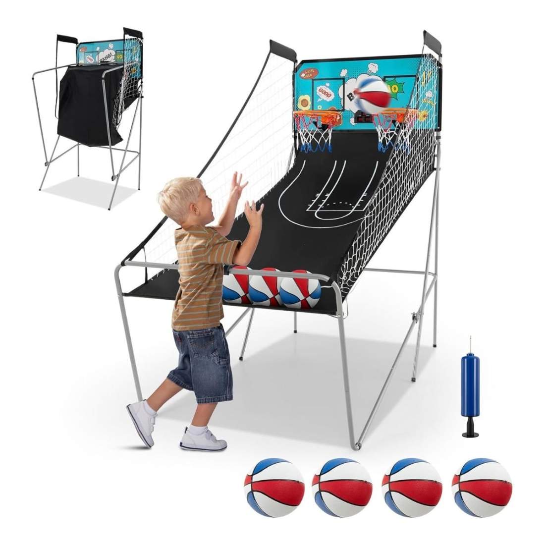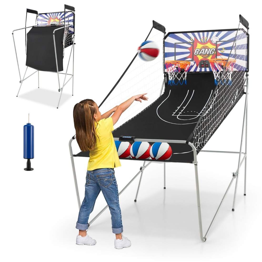 Bärbart arkadspel för basket – Inkluderar 2 bollar och pump