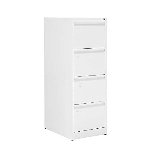 OFITURIA ® Metallisk Typ Bisley Arkiv Vit Kontor Organisation med 4 Lådor för DIN A4 Y Folio Mappar, Dokument med nyckel, 132 X 46 X 62 (1 enhet, Vit 4 Lådor)