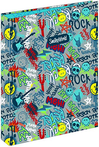 Smiley Rebel 4-ringsmapp | Arkiv 4 A4-ringar Skolan, Youth Ringring Sorteringsmapp med hög kvalitet Kartong Hårt lock - Åtgärder 26,5 x 34,5 x 5 cm