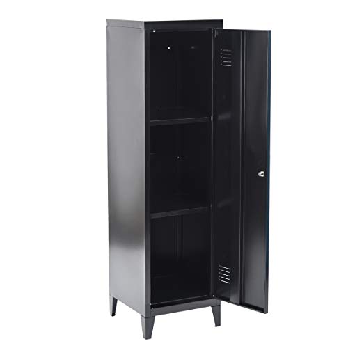 FurnitureR Arkiv i industriell stil, förvaringsskåp med nyckel, låsbart skåp, kontorsmöbler, 38,2 x 38,2 x 137,3 cm, svart