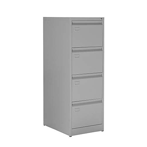 OFITURIA ® Metallisk Typ Bisley Arkiv Kontor Organisatorisk Grå RAL9006 med 4 Lådor för DIN A4 Y Folio Mappar, Dokument med nyckel, 132 X 46 X 62