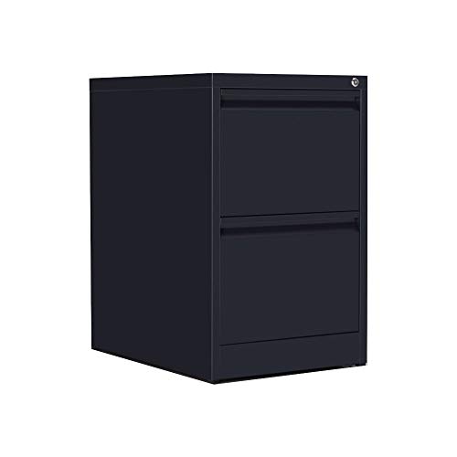 OFITURIA ® Svart Kontor Organisatorisk Metallisk Arkiv med 2 Lådor för DIN A4 Y Folio-mappar, Dokument med nyckel, 62 X 46 X 72