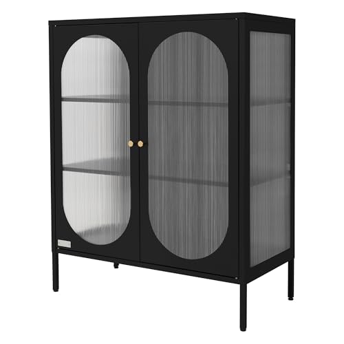 ML-Design vitrinskåp 80 x 102,5 x 40 cm svart skåp med 3 hyllplan och 2 dörrar metallmöbel i stål i industriell design för vardagsrummet Passar som byrå bokhylla arkiv eller golvskåp för förvaring