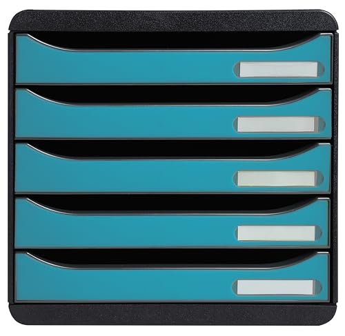 Exacompta - Ref. 30934D - BIG BOX+ Skandi arkiv- och förvaringsmodul, stapelbar, 5 lådor för A4+ dokument Yttermått: D 34,7 x B 27,8 x H 27,1 cm - Pacific blue