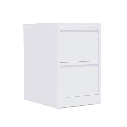 OFITURIA ® Vit Kontor Organisatorisk Metallisk Arkiv med 2 Lådor för DIN A4 Y Folio-mappar, Dokument med nyckel, 62 X 46 X 72