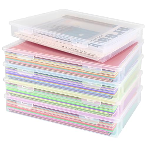 QWORK® Bärbar arkivlåda i A4-storlek, hållbar klar plast, 4-pack, perfekt för dokument, tidskrifter, klippböcker, foton