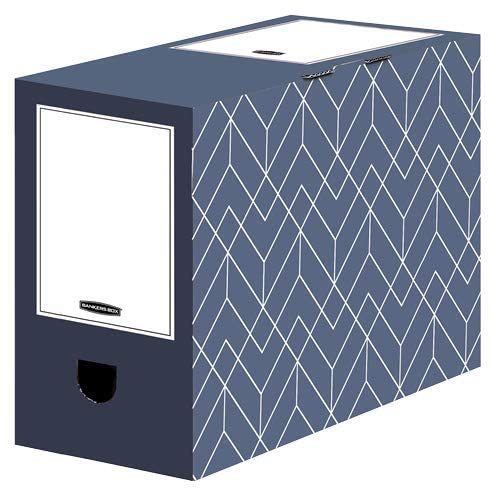 Bankers Box Arkivlåda A4, Décor-serien för kontor och hem, 100 mm ryggbredd, tillverkad av 100% återvunnen wellpapp, färg/motiv: midnattsblå, 5 stycken