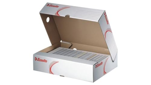 Esselte Standard arkivlåda 80, A4, överföringsfil, syrafri korrugerad skiva, 600 arkkapacitet, 80 mm rygg Förpackning med 25 80 mm Vitt