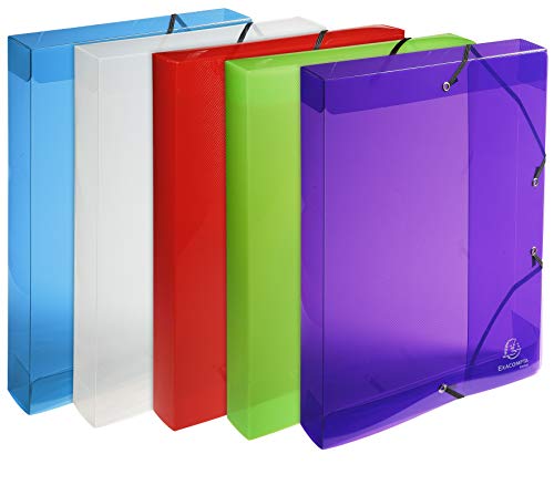 Exacompta Crystal PP elastisk arkivlåda, A4, 40 mm rygg - blandade färger, paket med 8
