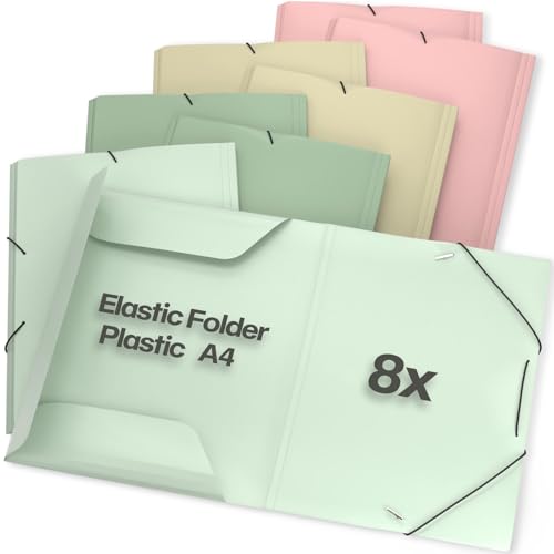 ACROPAQ – 8 x samlarmapp A4 – upp till 200 sidor, ryggbredd 2,5 cm, elastisk förslutning, jord, naturlig färgkollektion – dokumentmapp, arkivlåda, häftlåda