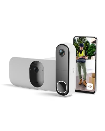 Arlo HD trådlös videoporttelefon och Floodlight 2K WiFi-kamera Vit - Smart hemskydd, mörkerseende, rörelsedetektering, tvåvägsljud, kompatibel med Alexa