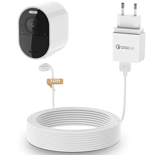 Arlo Ultra laddningskabel BECEMURU snabbladdning 3.0 och batteriladdning strömadapter med väderbeständig magnetisk kabel för Arlo Ultra (europeiska föreskrifter) (9 meter, 1-pack)