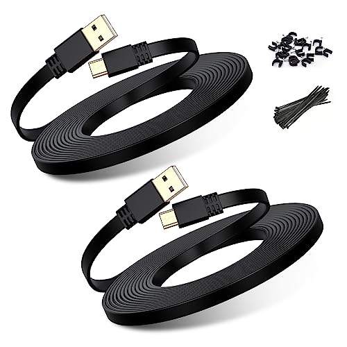 Basesailor Micro USB-kabel 6 m 2-pack,20 fot Platt Laddningskabel för Neos Smartcam,Yi Nest Cam,Blink XT XT2 Inomhus Utomhus 3:e Gen,Arlo Q,Wyze Cam,Netvue,Xbox One 7