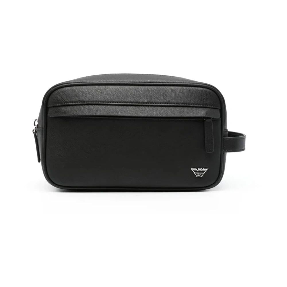 Emporio Armani, Väskor , Herr, ONE Size, Läder, Saffiano läder beauty case med handledsrem