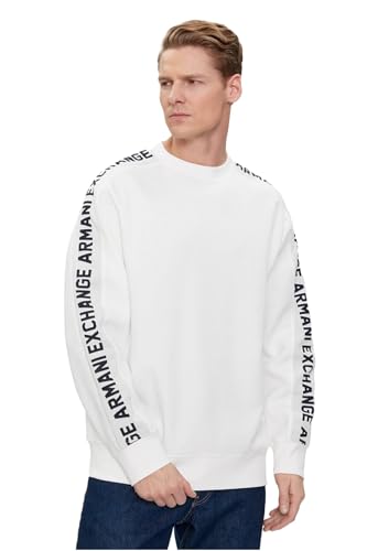 Armani Exchange Men's Line Logo pullover, huvtröja, tröja, off vit, XXL, Vit, XXL