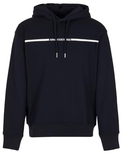 Armani Exchange Men's Line Logo Pullover Hoodie Sweatshirt Blå, XL, djup marin, XL
