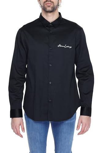 Armani Exchange långärmad signatur logo button down-skjorta för män. Normal passform, svart, XS, Svart, XS