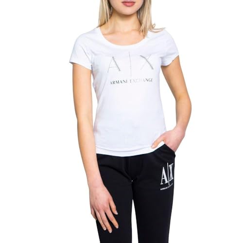 Armani Exchange Strass Logo T-shirt för kvinnor, Svart (svart 1200), XL