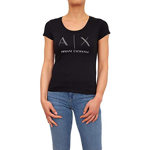 Armani Exchange Strass Logo T-shirt för kvinnor, Svart, XS