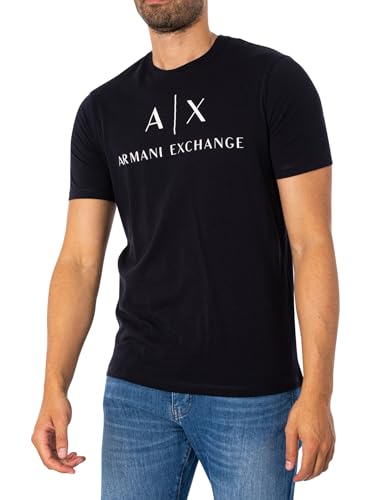 Armani Exchange T-shirt med rund hals och logotyp, för män, Marinblått Xsp, S