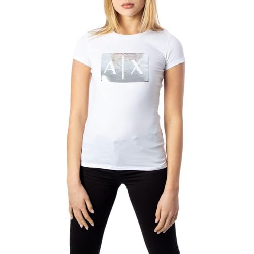 A|X ARMANI EXCHANGE kortärmad t-shirt för kvinnor med klassisk manuslogotyp med rund hals, Optisk vit, M