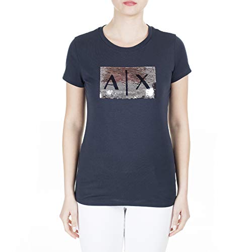 Armani Exchange T-shirt för kvinnor, Marinblå silver, XL