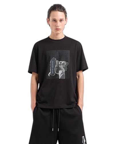 Armani Exchange Herr botten av sko Graphic with Grid Overlay Regular Fit T-shirt, svart, XL