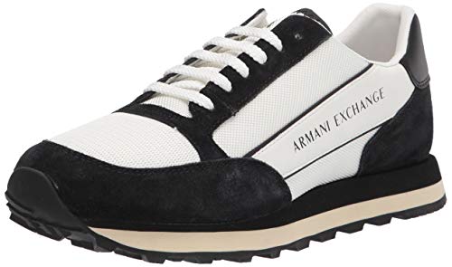 Armani Exchange Herr lace up, sida line logotyp, baksida färg detalj sneakers, svart + Opt.Vit, 39 EU, Svart opt vit, 39 EU