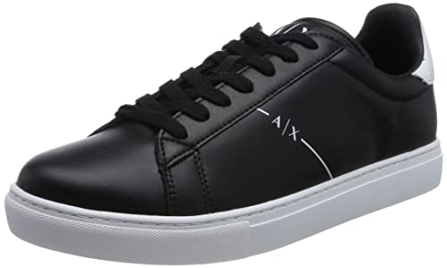 Armani Exchange Herr Seattle Low Contrast sydd sidologotyp sneakers, svart + svart, 41 EU