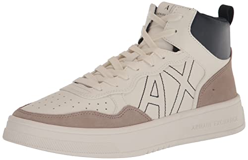 Armani Exchange Herr hög topp, flerfärgad, präglad logotyp sneakers, off white + BEIGE, 43,5 EU