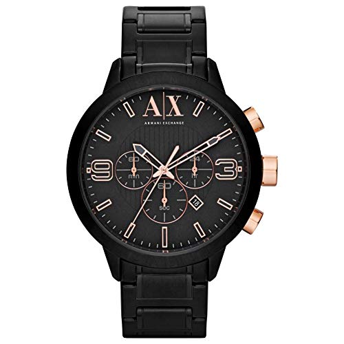 Armani Exchange Watch For Men, Quartz Chronograph movement och 49mm Case Size med rostfritt stålrem, Svart och roséguldton