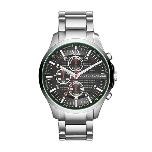 Armani Exchange Watch For Men, Quartz Chronograph movement och 46mm Case Size med rostfritt stålband, Silverton och grå
