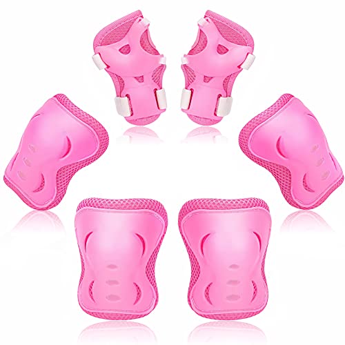 YUTOU 6-i-1 Justerbart Knäskydd Och Armbågsskydd Set För Barn - Skyddsutrustning För Inlines, Cykling, Skateboards, Skoter (Rosa)