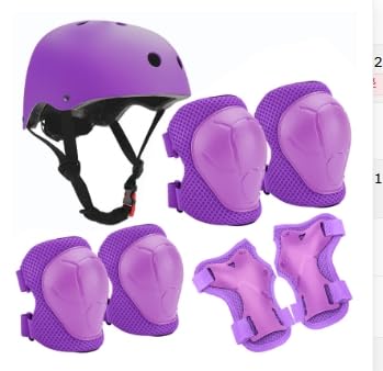 ZWOOS Knäskydd för barn, set med hjälm, inlines skyddsutrustning barn 3–10 år, knäskydd barn, knä och armbågsskydd barn för inlines, skateboard, cykel, rullsko (lila)
