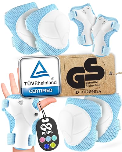 99FLIPS Knä- & Armbågsskydd Barn [6-delar] - Skyddsutrustning Skateboard & Roller - XS Ljusblå - Från 3 år