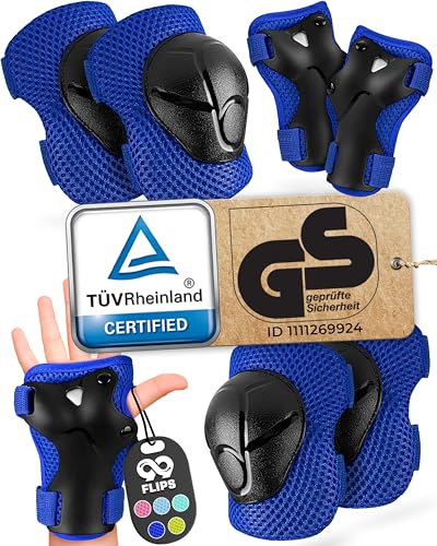 99FLIPS Knä- & Armbågsskydd Barn [6-delar] - Skyddsutrustning Skateboard & Roller - S/M Blå - Från 4 år