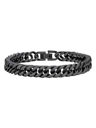 PROSTEEL Herrarmband, rostfritt stål, 18 k guldpläterad, svart pansarkedja, armband för män, pojkar, tunga länkar, länk, kedjearmband, 19/21/23 cm, armband, hip hop, rappare, modesmycke, 8/12/16,5/17 mm, anpassbar, 19 centimeters, Rostfritt stål