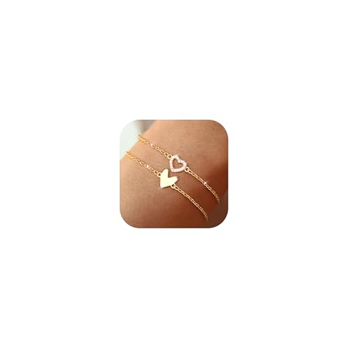 Dochais hjärta armband dam, 14K guld armband dam silver vänskapsarmband, justerbara armband guld gåva för kvinnor flickor, 23 cm, Mässing