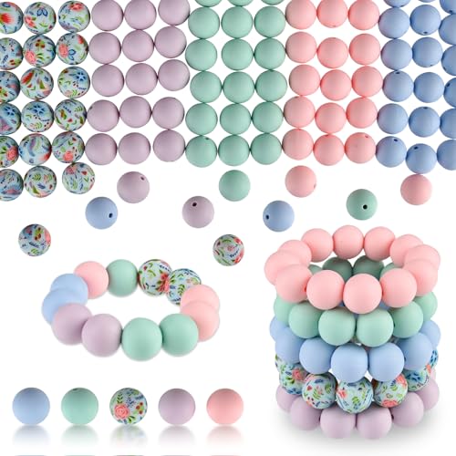 ASTARON 100 st 15 mm silikonpärlor för nyckelringstillverkning, ljusrosa lila blå runda pärlor för armband hantverk pärlbara pennor dekorationer smyckestillverkning fest presenter tillbehör