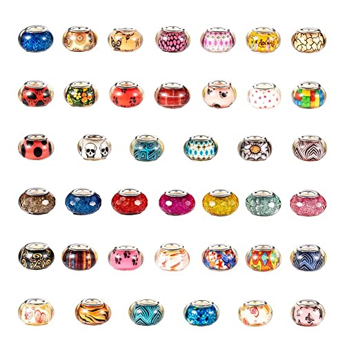 Grevosea 200 st stora hålpärlor, färgglada europeiska pärlor kristalldistans-pärlor för armband berlocker smycken gör-det-själv-tillverkning, blandade färger