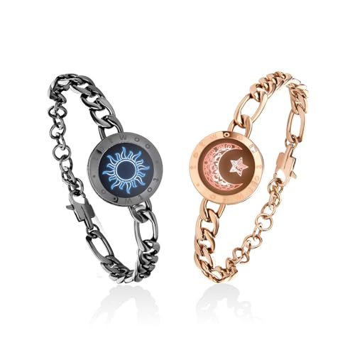 TOTWOO par figarokedja armband par gåvor | Partnerarmband med beröring vibration lys upp | fjärrrelationspresent för långa avstånd gåvor till henne mamma – svart + guld, Paare, Rostfritt stål, Ingen
