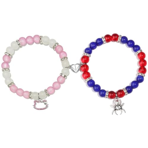 SIXDUTON 2 Stycken Armband Kitty Spider Magnetiskt Matchande par Armband, Fjärrrelation, Armband för par Och Bästa Vänner, Gåva Till Alla Hjärtans Dag årsdag