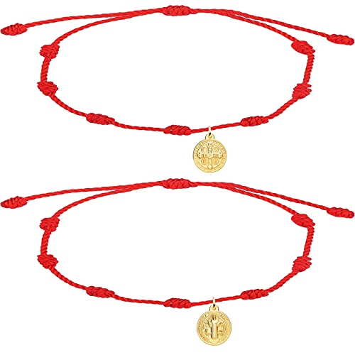 cotigo, röd 7 knutar stålamulett tur och skydd onda ögat armband för par vänskap justerbara smycken för kvinnor män, Ajustable, Rostfritt stål
