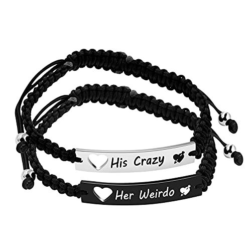 1 par handgjorda flätade armband för par, armband för män kvinnor graverade med I Love You 3000, Gud gav mig dig, hans galna hennes konstig, födelsedag alla hjärtans dag present till flickor pojkar